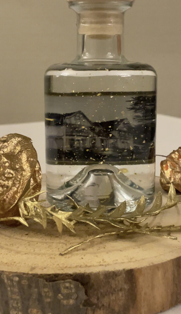 Een gin op basis van botanicals die we ook gebruiken in de keuken: jeneverbes, koriander, engelwortel, kardemom, citroenschil, rozemarijn, zwarte peper, gemberwortel, ……